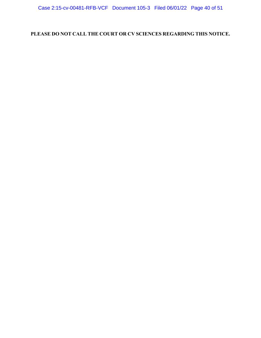 PLEASE DO NOT CALL THE COURT OR CV SCIENCES REGARDING THIS NOTICE. Case 2:15-cv-00481-RFB-VCF Document 105-3 Filed 06/01/22 Page 40 of 51